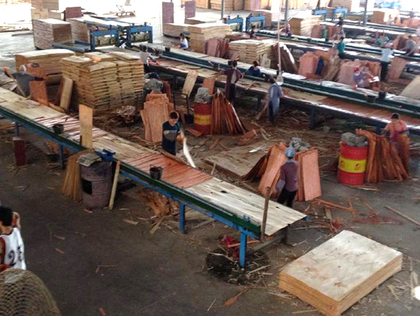 涂完膠之后再進行熱壓工藝壓平。以前我們經常使用鍋爐水進行加熱,現在可以使用電加熱,在輔壓平之后,使建筑模板密度增加,十分的規則。再使用預壓再熱壓的工藝,降低它錯位機率,然后再使用壓力以及溫度熱壓,這樣可以確保中國建筑模板都有著十分好的膠合度和硬度。
